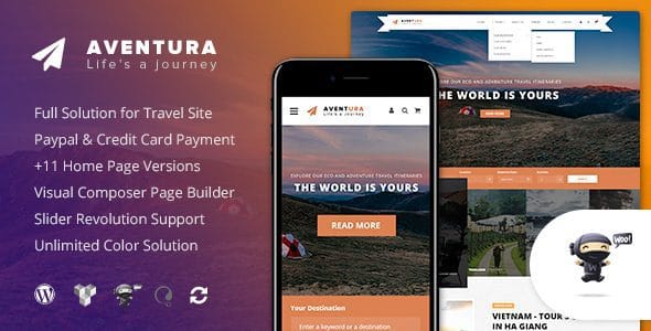 Aventura — тема WordPress для туризма и бронирования туров, разработанная для туристических сайтов, таких как местные турагентства, парки приключен...