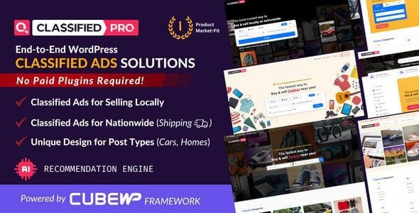 ClassifiedPro, созданная на основе мощного фреймворка CubeWP, — это универсальная тема WordPress, предназначенная для создания сайтов с объявлениям...