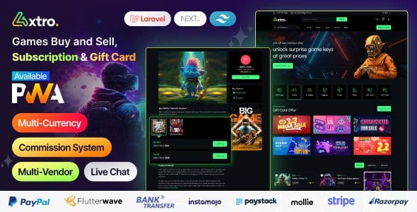 Axtro – Games Buy and Sell, Subscription & Gift Card Laravel Script — это мощная мультивендорная платформа, предназначенная для покупки и продажи и...