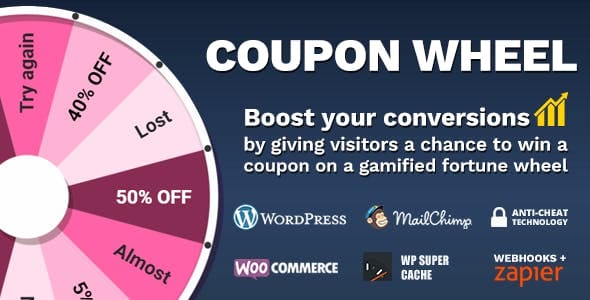 Coupon Wheel предоставляет самое продвинутое игровое всплывающее решение для купонов для WooCommerce и WordPress, а также является очень лёгким.